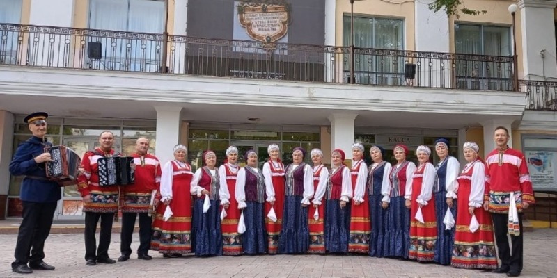Енотаевский район представили: Мария Шашина, Варвара Пересветова, солистки Енотаевского районного центра культуры и народный ансамбль «Думка», созданный на базе Замьяновского центра казачьей культуры «Дар».