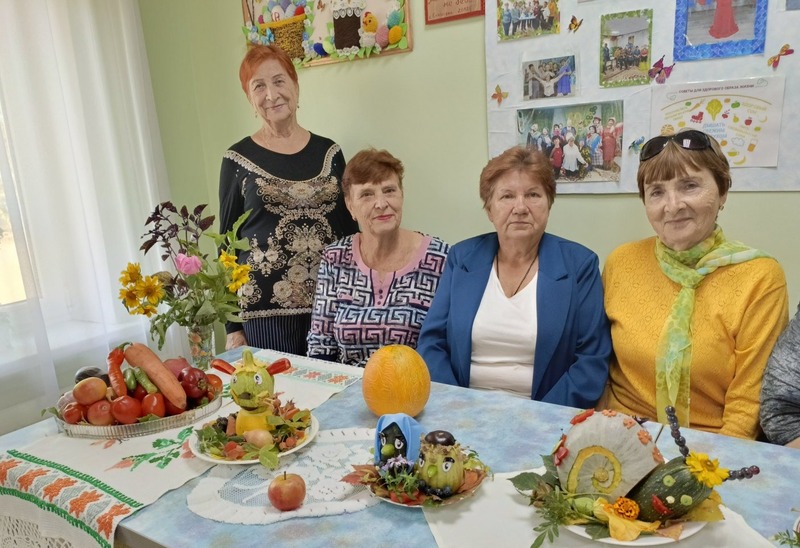 В результате несложной, но кропотливой деятельности у мастериц получились яркие и необычные поделки из овощей и фруктов. Мероприятие прошло в теплой и дружеской обстановке. Трудолюбивые и старательные участницы получили заряд бодрости и хорошего настроения. Пожилые люди делились друг с другом положительными эмоциями и с удовольствием фотографировались все вместе.