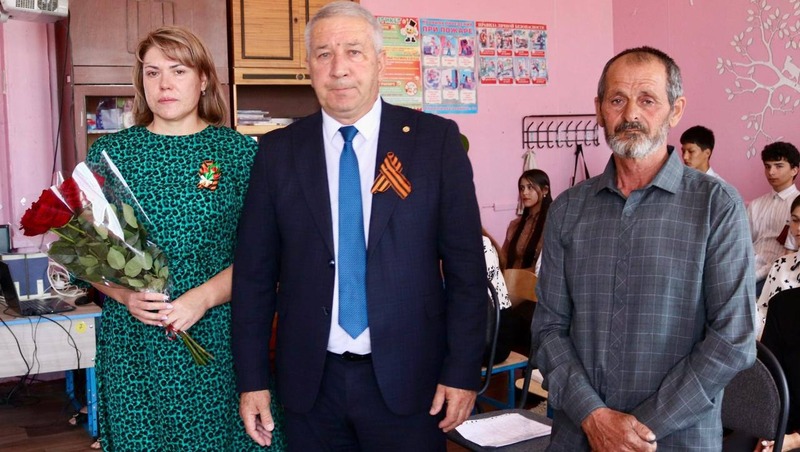 В образовательном учреждении на территории сельского поселения Фёдоровка прошел необычный урок, в ходе которого ученикам рассказали не только об участниках Великой Отечественной войны, но и о героях специальной военной операции. На патриотический урок были приглашены: глава Енотаевского района Борис Будаев, глава села Фёдоровка Николай Семеченков, представители управления образования района, родители погибшего участника СВО Дени Даудова – Ольга Глебовна и Ваха Абусаидович.