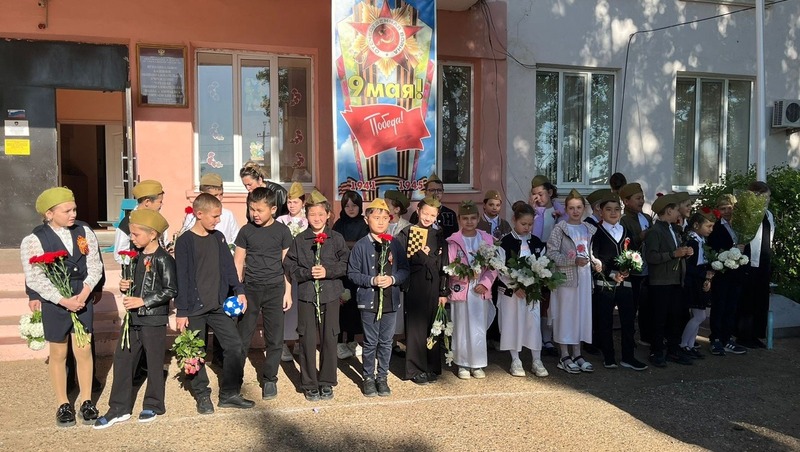 На территории начальной школы села Енотаевка около памятного обелиска героям Великой Отечественной войны прошло торжественное мероприятие для учащихся младших классов. Линейку-митинг подготовили и провели классные руководители учащихся третьих классов Марина Ширяева и Елена Рюмкова.