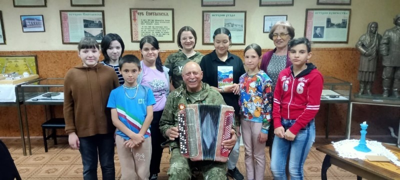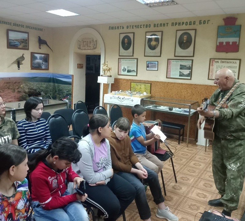 Сотрудники енотаевского музея пригласили на мероприятие, организованное в рамках всероссийской культурной акции «Ночь музеев» обучающихся Енотаевской школы-интерната. Ребят ждал час истории с участием представителей районного Совета ветеранов и местного поэта, автора, исполнителя собственных музыкальных произведений, бардовских песен и баллад Петра Старцева.