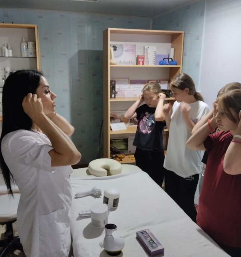 Для воспитанников детского социального приюта «Любава» села Енотаевка сотрудники центра занятости населения подготовили увлекательную экскурсию в салон. Во время посещения кабинета массажа специалист рассказала гостям о правилах личной гигиены, познакомила ребят с разными видами массажа, назвала полезные и вредные пищевые продукты.