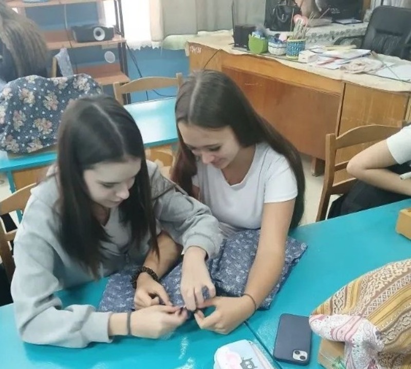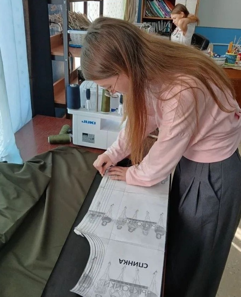 Преподаватель технологии Елена Кабанова совместно с ученицами 9 класса после уроков шьют нижнее бельё и лонгсливы для военнослужащих. Мастерицы старательно выполняют все действия — от начального этапа до завершения работы, они тщательно следят за точностью выкроек, ровностью швов, стараются сделать так, чтобы готовые вещи выглядели красиво и были удобными и прочными.