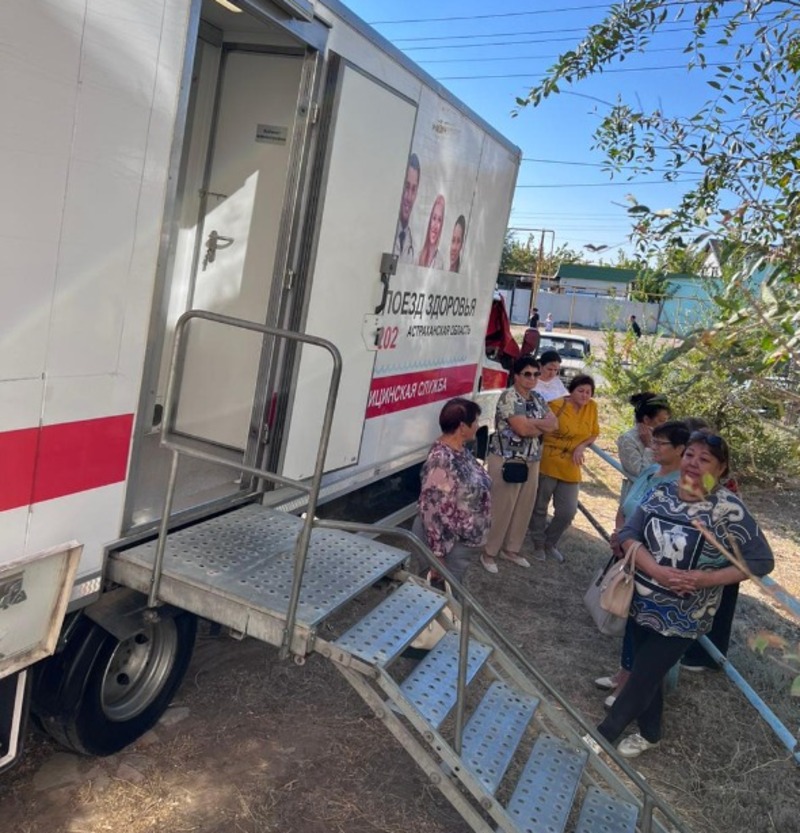 В Енотаевском муниципальном районе начал свою работу региональный «Поезд здоровья». В его составе – врачи узких специальностей. В мобильном передвижном пункте можно пройти маммографию, а также получить консультации медицинских работников. Это врач-невролог, врач кабинета профилактики. Сегодня проверяют показатели своего здоровья жители муниципального образования «Сельское поселение Никольский сельсовет Енотаевского муниципального района Астраханской области». Данные выездные акции в регионе проходят регулярно. Сельчане, которые проживают далеко от областных учреждений здравоохранения, смогут пройти медицинское обследование в специализированном «Поезде здоровья».