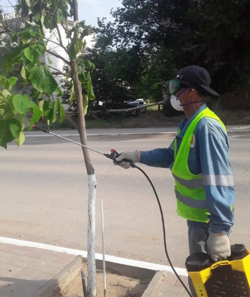 Работники предусмотрели все меры безопасности при работе с химикатами и в спецодежде, при использовании средств защиты органов дыхания и кожных покровов провели обработку зелёных насаждений от вредителей. Такие меры позволяют не только сохранить красивый вид наших деревьев и кустарников, но и предотвратить распространение опасных заболеваний.