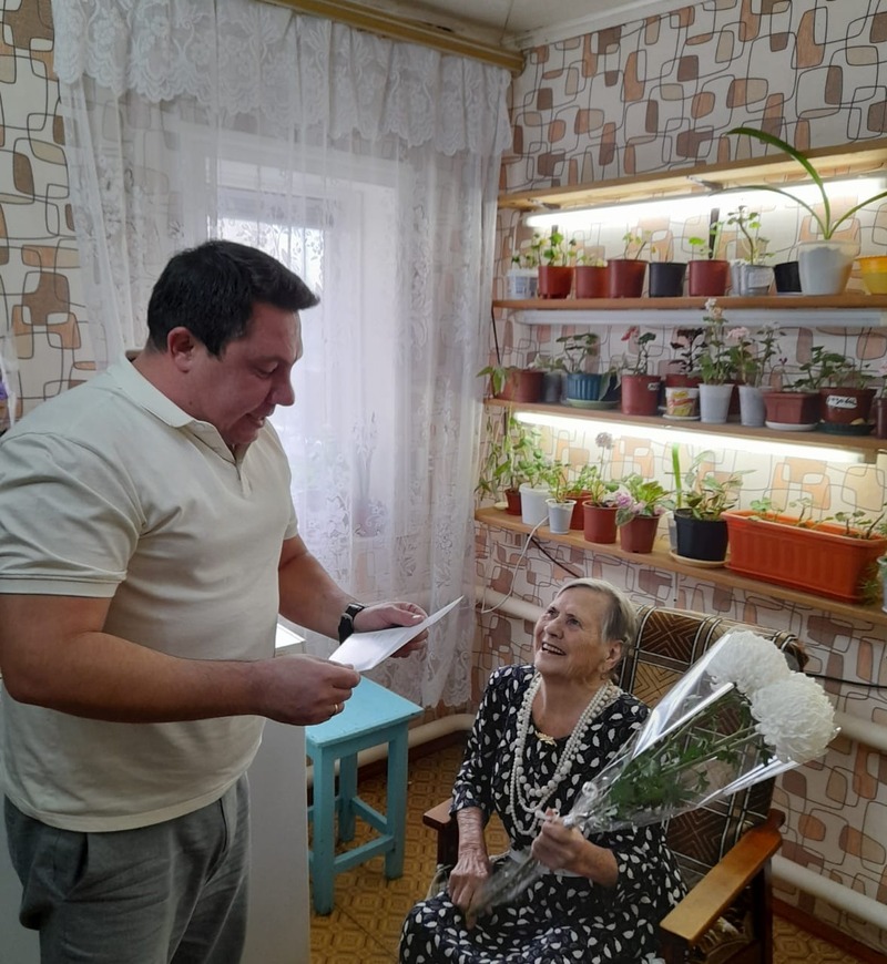 Руководитель социальной службы, представители администрации МО «Енотаевский муниципальный район Астраханской области», председатель Совета ветеранов войны и труда, вооружённых сил и правоохранительных органов поздравили с 90-летним юбилеем Александру Михайловну, пожелали здоровья, долголетия, добра и мира. По традиции ей вручены цветы, подарки и юбилейная открытка от имени губернатора Астраханской области И. Ю. Бабушкина.