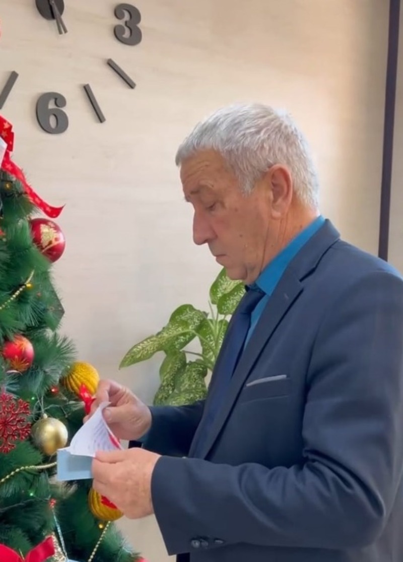 Борис Будаев снял с «Елки желаний» два детских письма, в которых обратившиеся к Деду Морозу ребята, просили подарить игрушечную полицейскую машину и современный планшет.