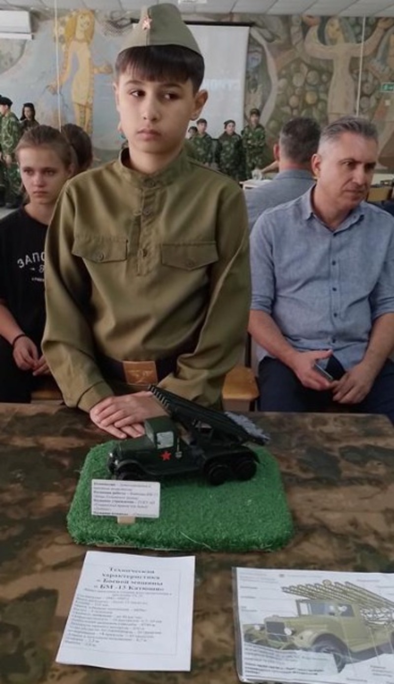 В сентябре текущего года на базе центра обучения и оздоровления и отдыха детей «Березка» состоялась военно-патриотическая игра «Зарница». В рамках мероприятия Александр Журавлев из социального приюта для детей «Любава» Енотаевского района принял участие в конкурсе моделей военной техники РФ «Боевая мощь России» и представил макет боевой техники «Катюша БМ-13» в номинации «Боевое и артиллерийское оружие». Презентуя свою работу, Саша рассказал членам компетентного жюри и другим конкурсантам о боевой мощи БМ-13, историю создания конструкторами и героическом прошлом в 1941-1945 гг., а также поделился своими творческими секретами, которые он использовал при прохождении этапов изготовления макета. Изделие Александра Журавлева получило высокую оценку у членов конкурсного жюри.