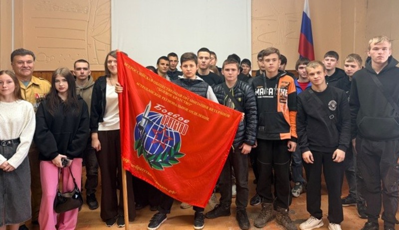 В актовом зале Енотаевского филиала АГАСУ состоялся час мужества в память о выпускниках филиала, погибших в ходе специальной военной операции на территории Украины. На встрече с ребятами присутствовал Владимир Дубовской, ветеран боевых действий в Афганистане, заместитель председателя Енотаевского отделения общественной организации ветеранов «Боевое братство».