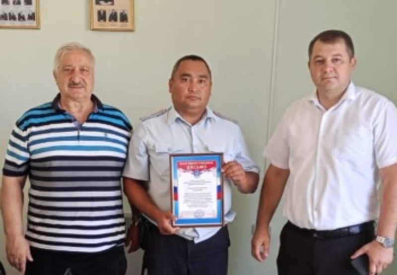 За высокий профессионализм, уважительное отношение к гражданам, эффективную деятельность в обеспечении правопорядка на вверенной территории, добросовестное исполнение обязанностей по защите прав граждан и в связи с профессиональным праздником — Днём участковых уполномоченных полиции — благодарственное письмо Совета депутатов МО «Енотаевский муниципальный округ Астраханской области» вручено Успанову Аскару.